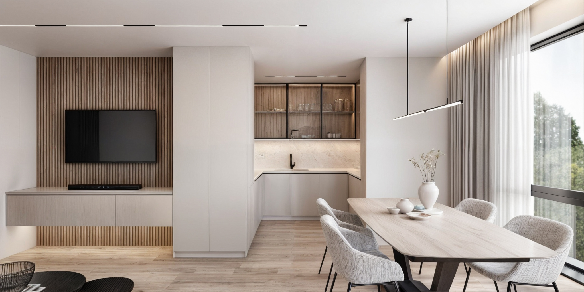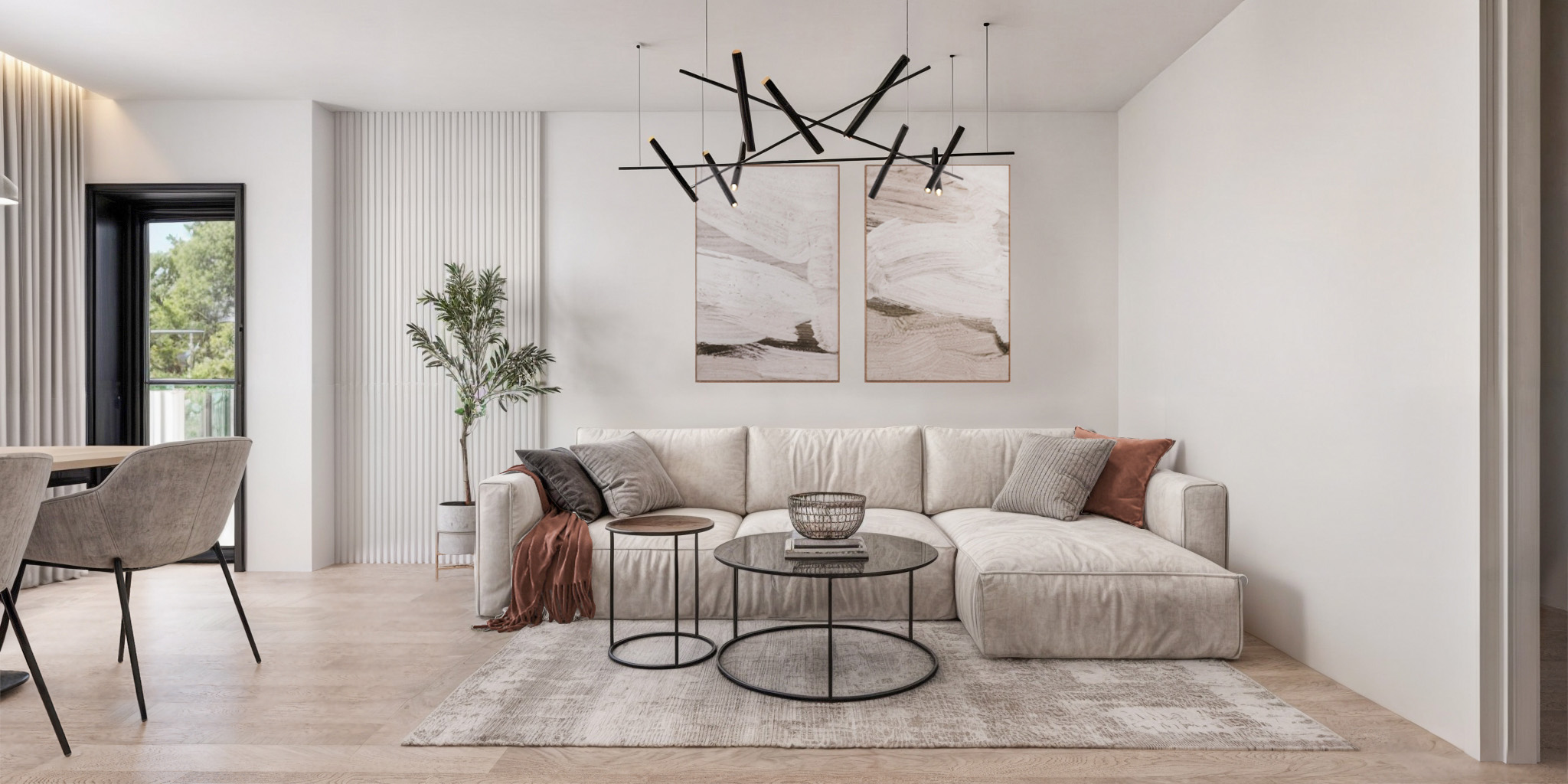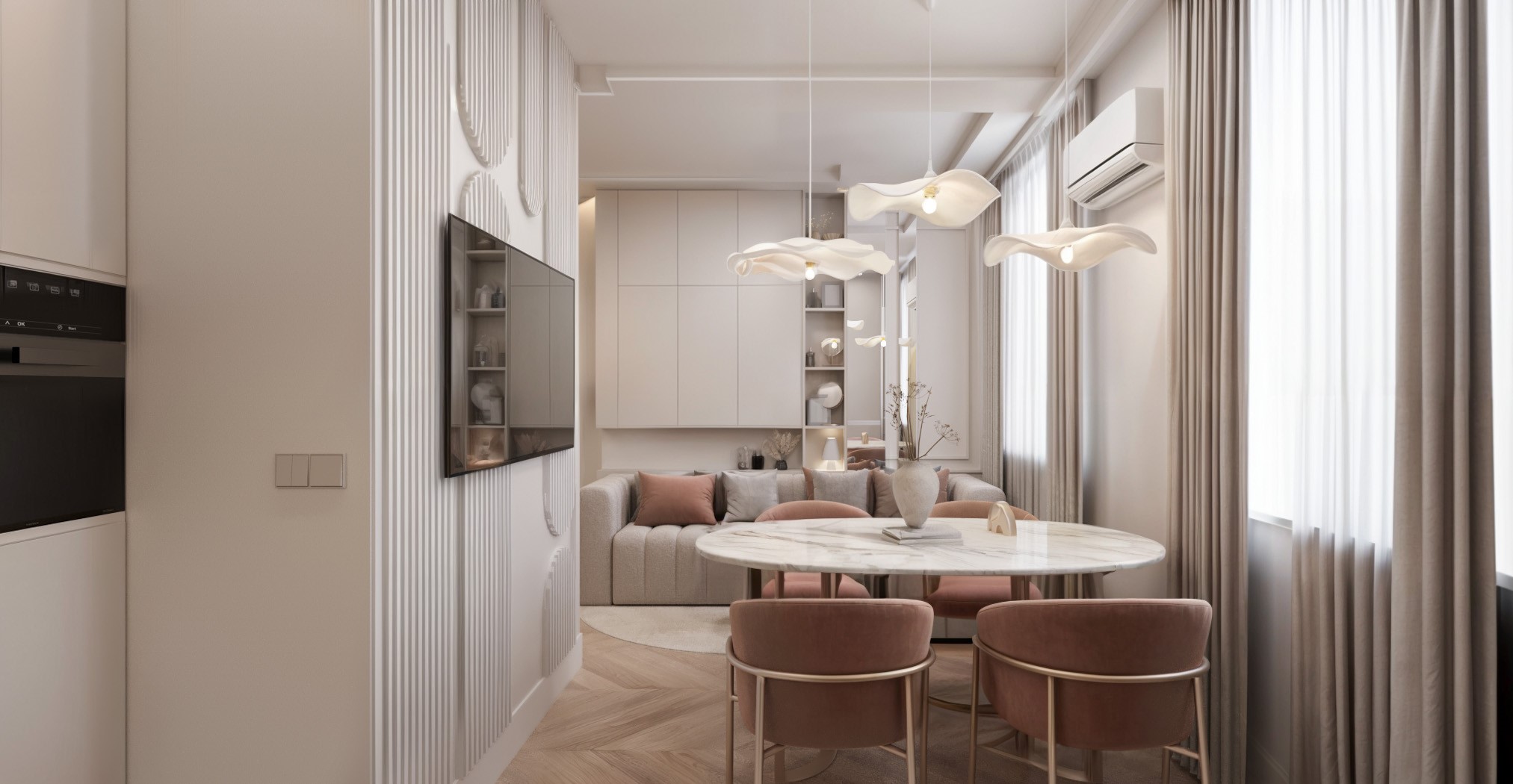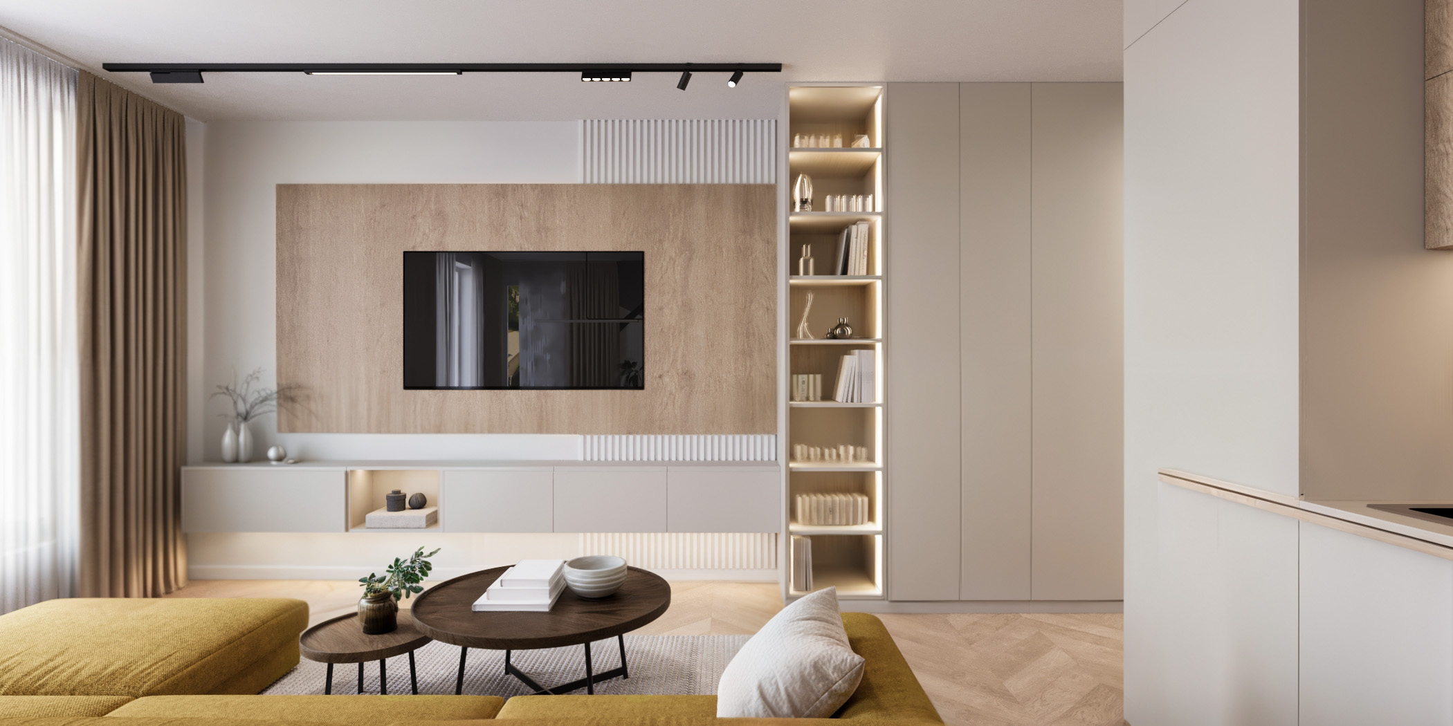 Професионален интериорен дизайн на апартаменти – от компактни студиа до просторни многостайни жилища. Създаваме оптимално разпределение, функционални зони и хармонична визия, съобразени с начина на живот, стила и бюджета на клиента.