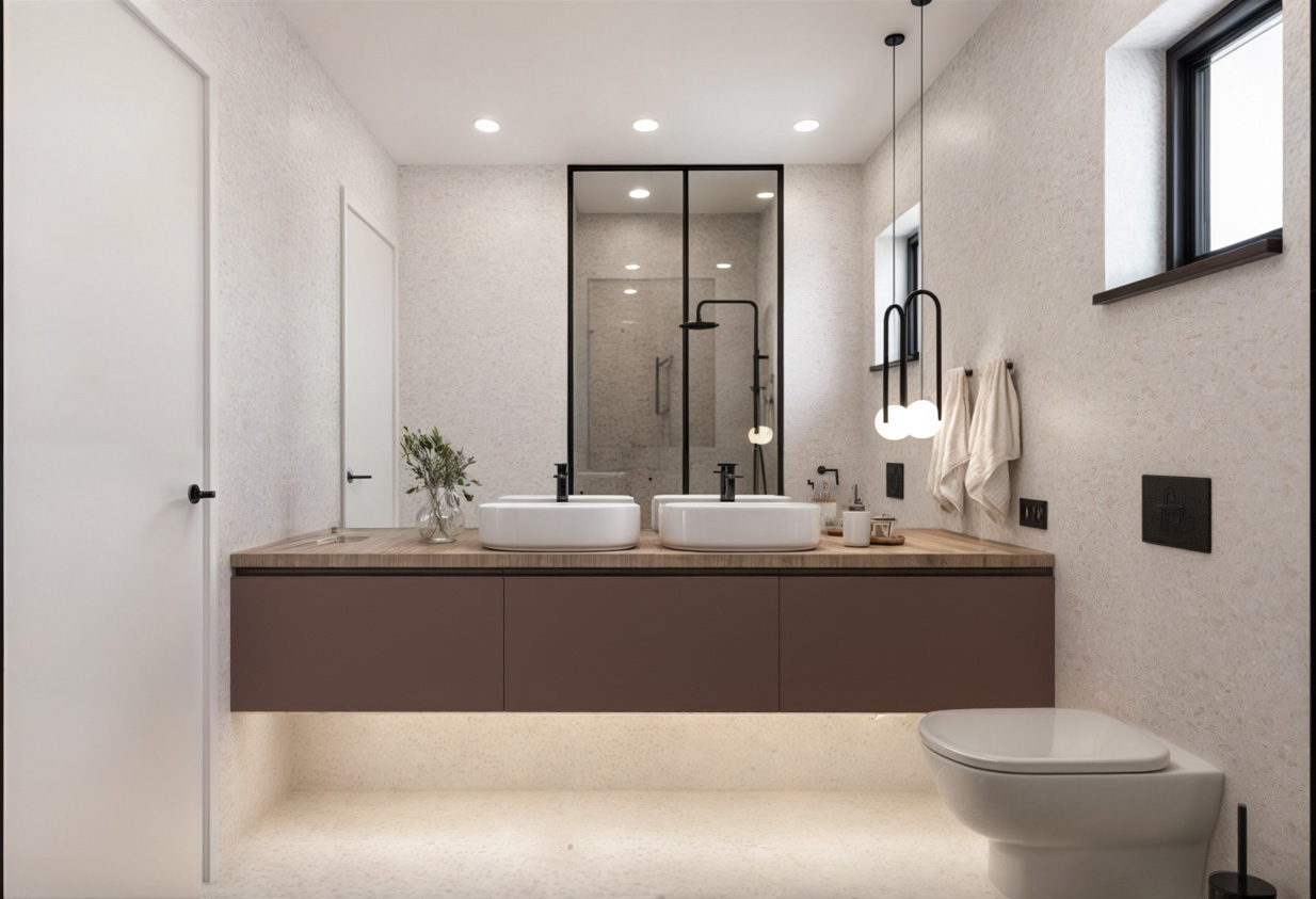 Индивидуален интериорен дизайн на бани с акцент върху функционалност и дълготрайност. Изготвяме 3D визуализации, оптимално разпределение, подбор на плочки и санитария, както и технически чертежи за безпроблемно изпълнение.