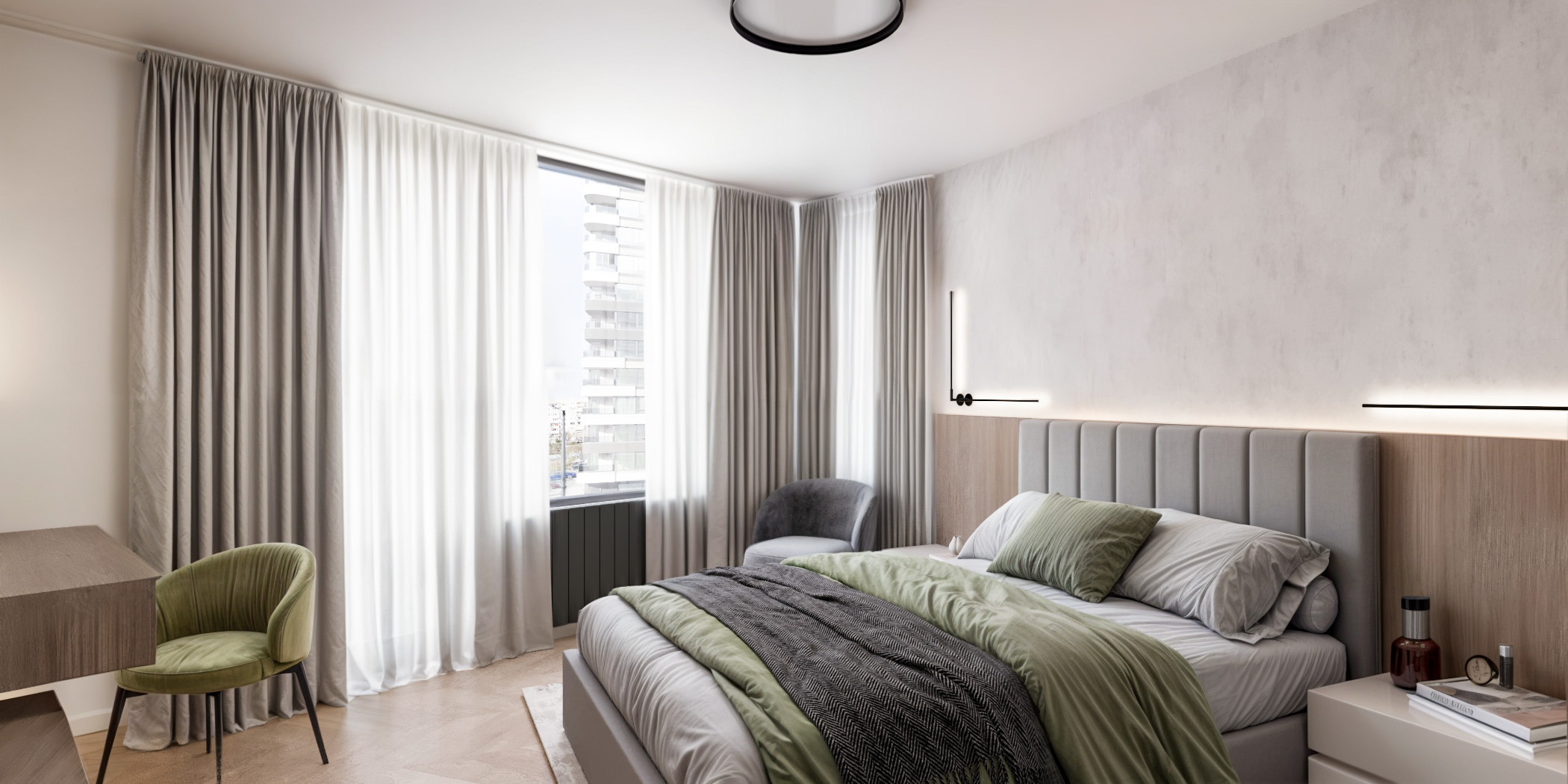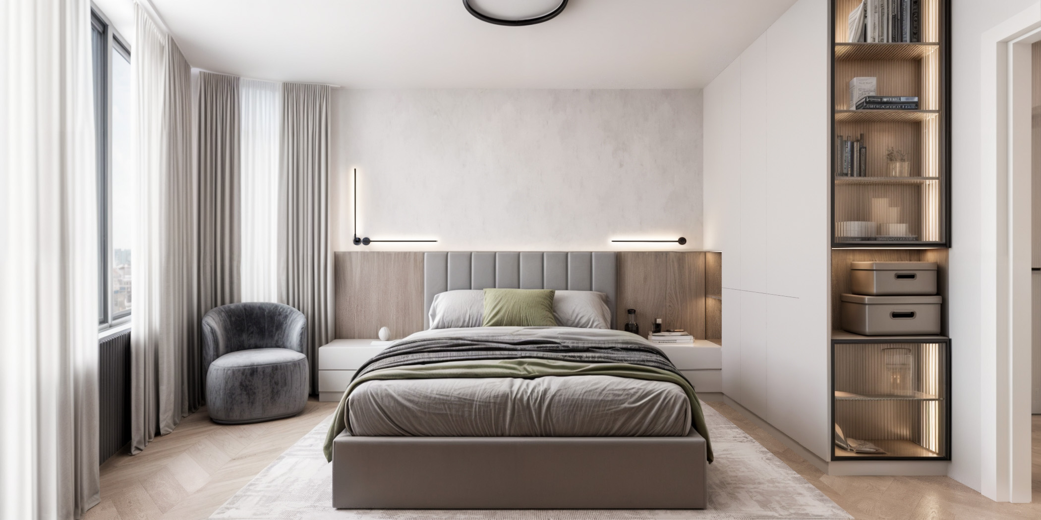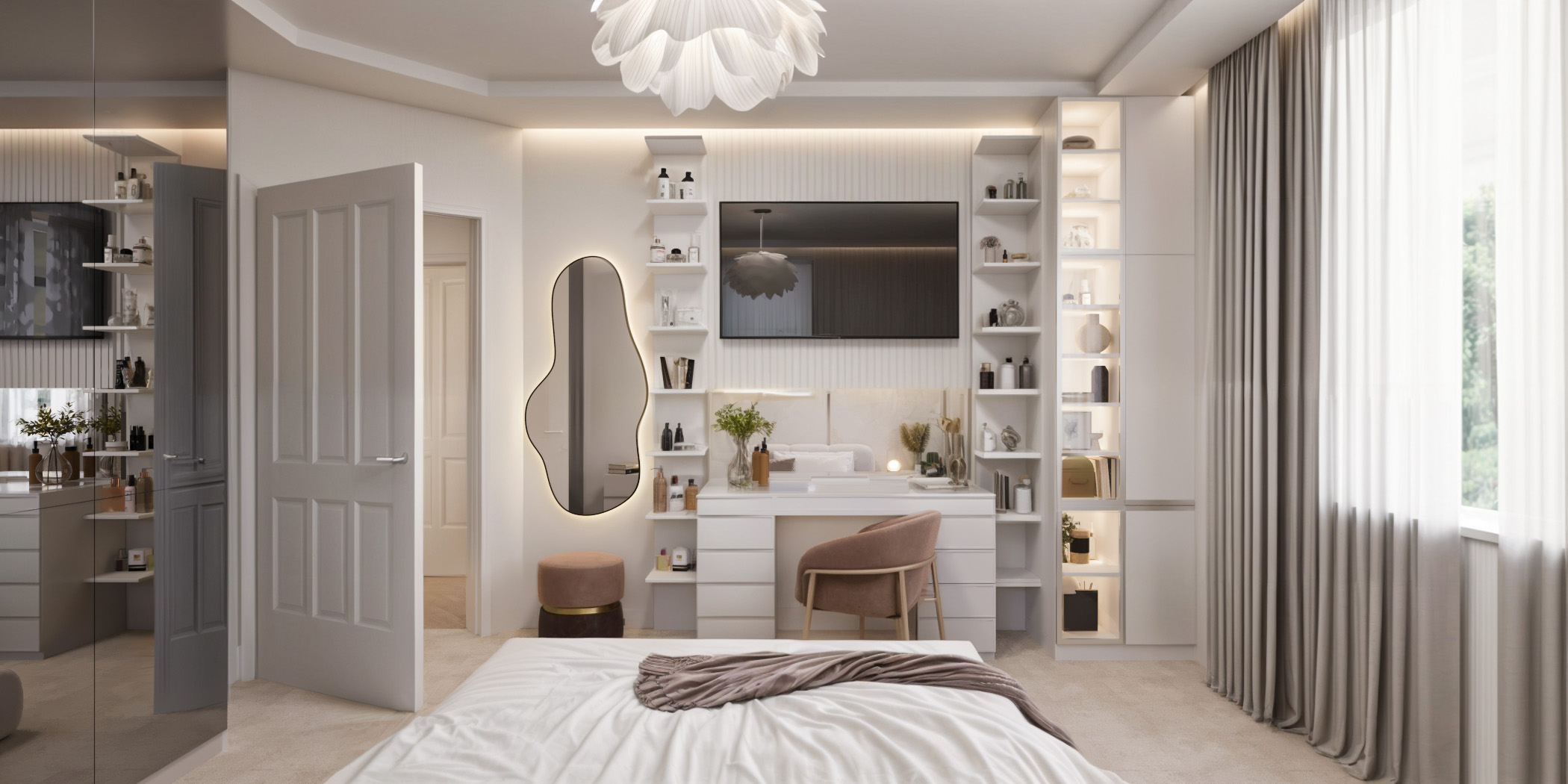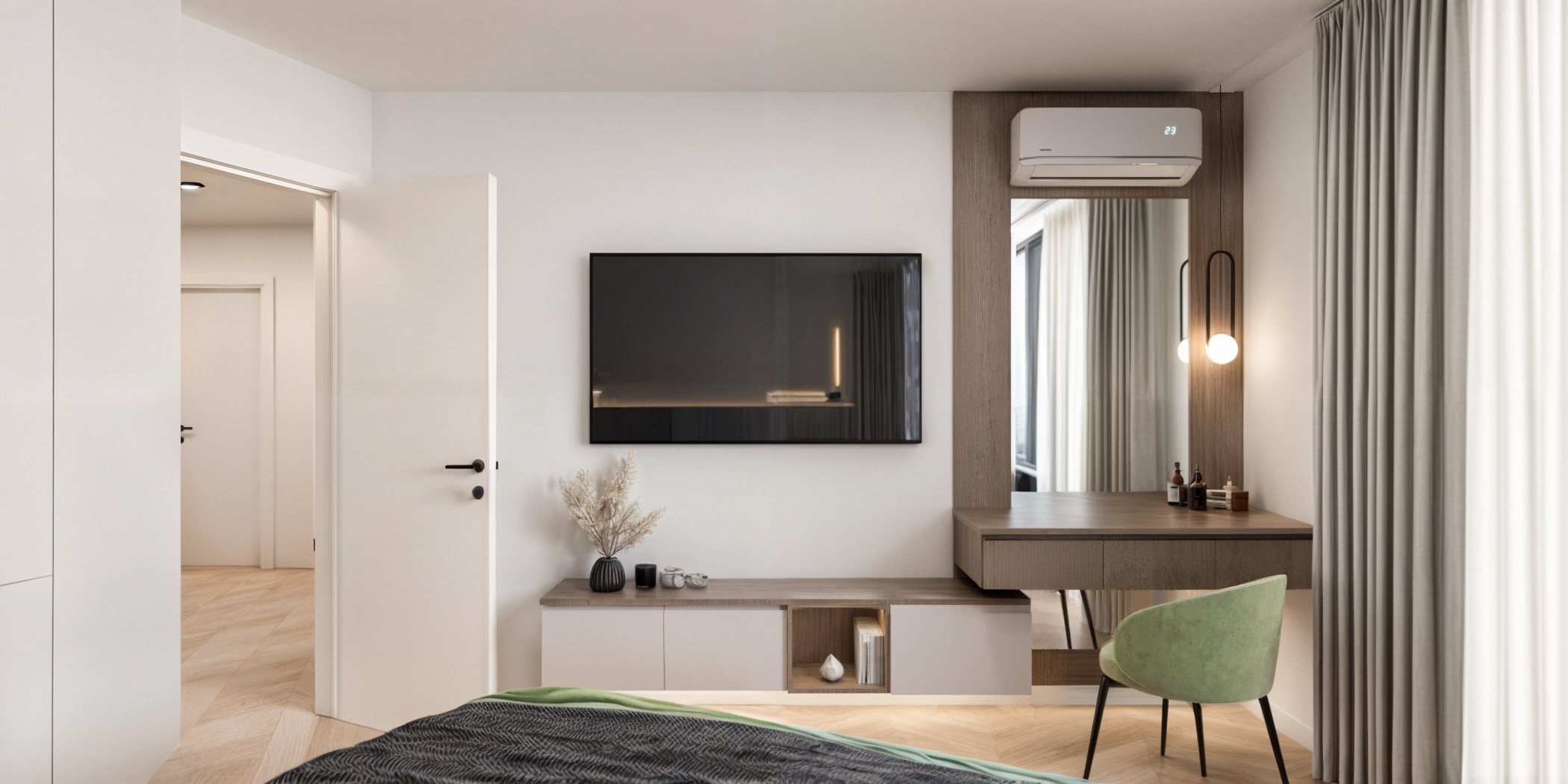 Интериорен дизайн на спални, създаден за пълноценна почивка и релакс. Работим с балансирани цветови комбинации, функционално разпределение и индивидуални решения, които отразяват личния стил на клиента.
