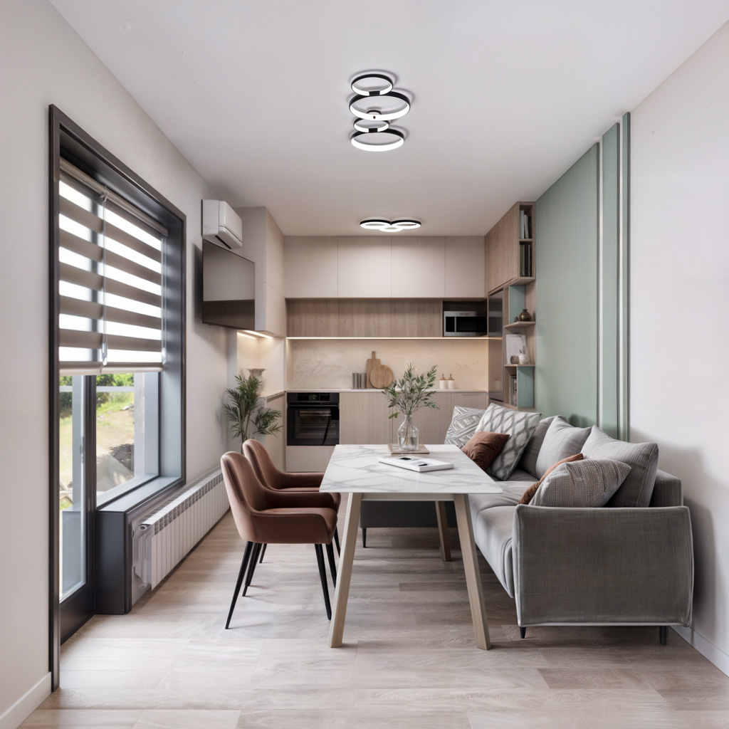Ефективно използване на пространството с баланс между удобство и естетика.